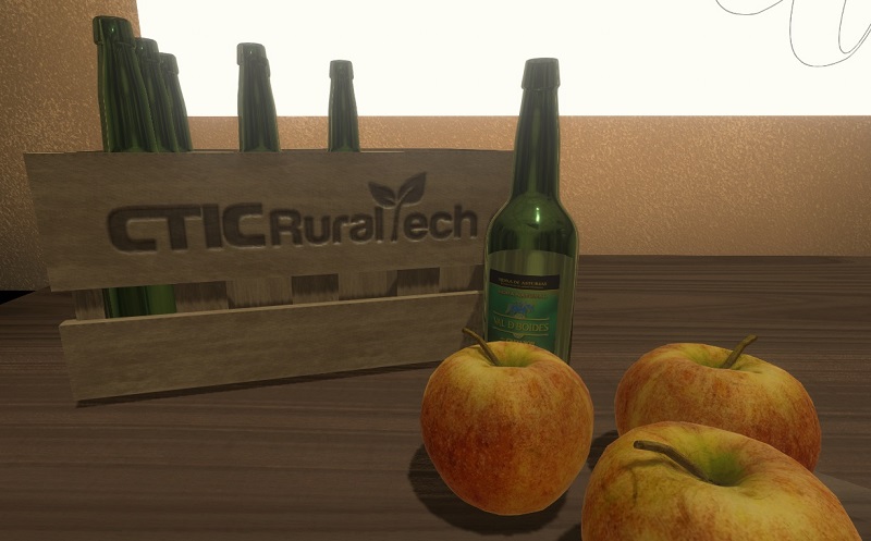 Un entorno de Realidad Virtual transporta a la persona usuaria a un llagar en el que puede demostrar su habilidad escanciando un culín "digital" de Sidra de Asturias tras un breve entrenamiento. Este sistema se ha conectado con un dispositivo físico acoplado a una botella, de modo que, cuando el escanciado virtual es correcto, se escancia a su vez la sidra en el mundo real, materializando físicamente y en tiempo real el culín generado en el mundo digital.
